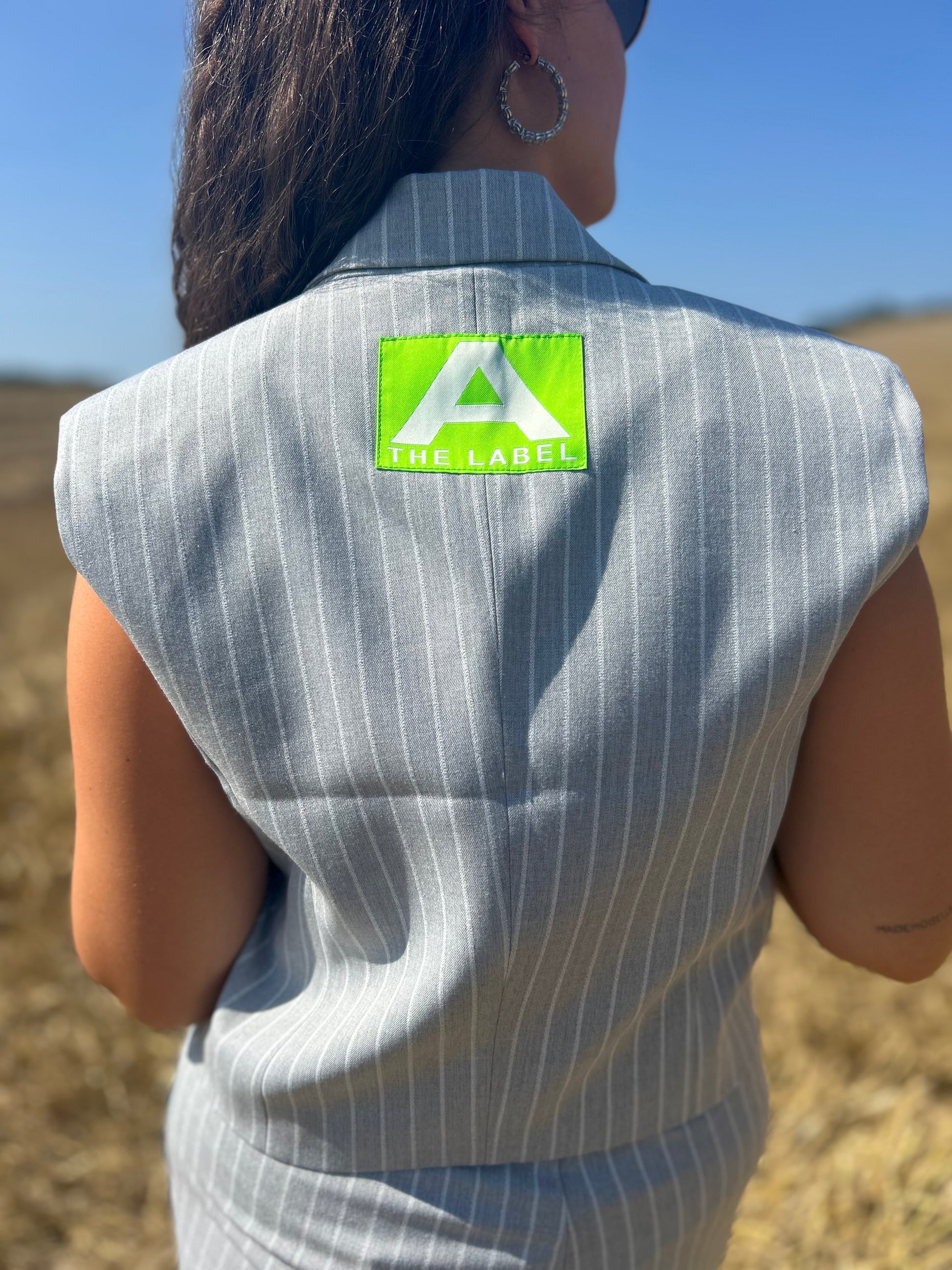 Le tailoring version cool : un gilet fluide à rayures qui a tout d'un statement.