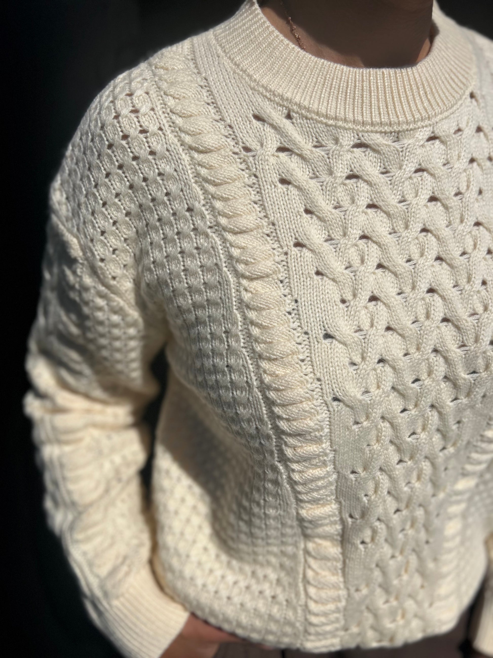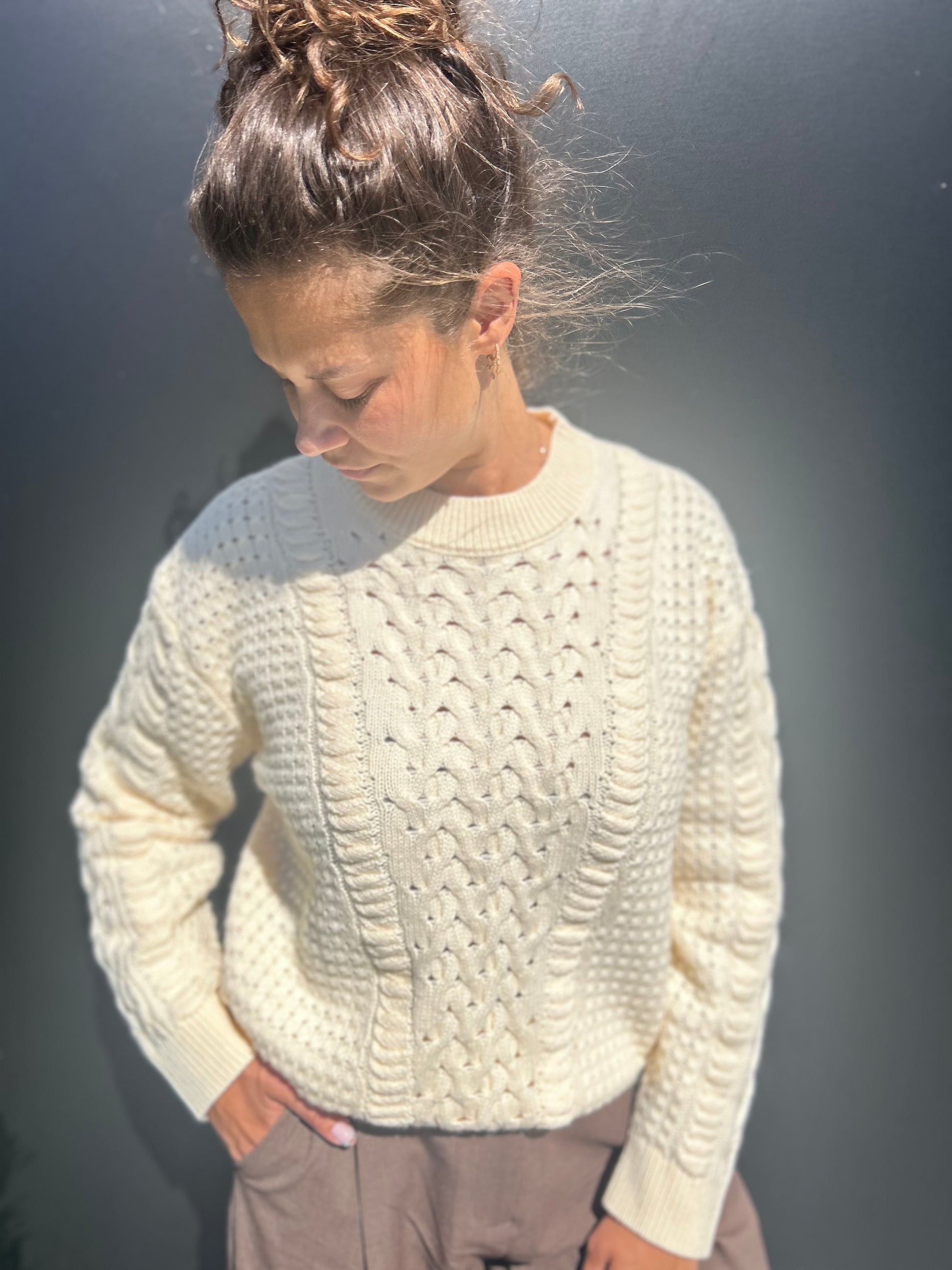 Le pull Percy de Suncoo, confectionné en maille torsadée raffinée avec laine, allie élégance et chaleur. Sa coupe droite et son col rond offrent une silhouette classique, idéale au quotidien. Ses manches longues et sa teinte écrue lumineuse assurent confort et modernité, facile à associer à un jean décontracté ou une jupe chic. Ce pull polyvalent s’impose comme un essentiel de la saison.