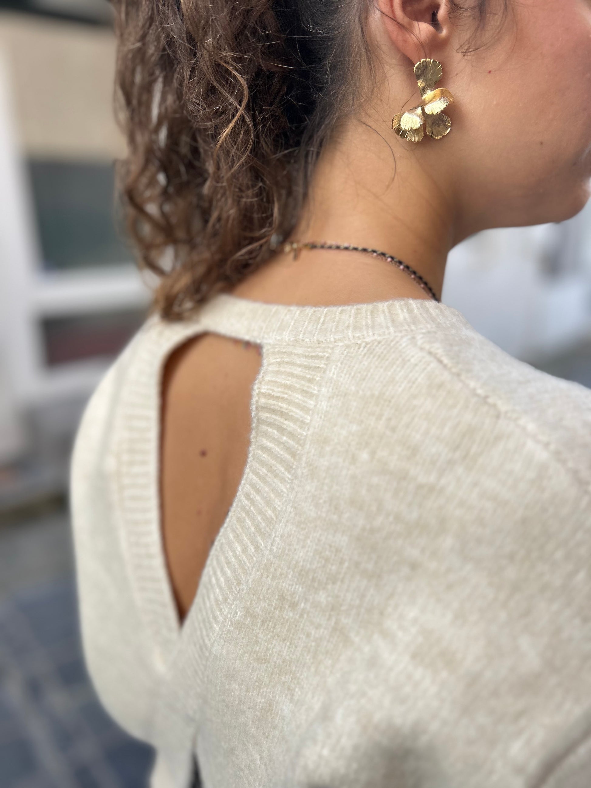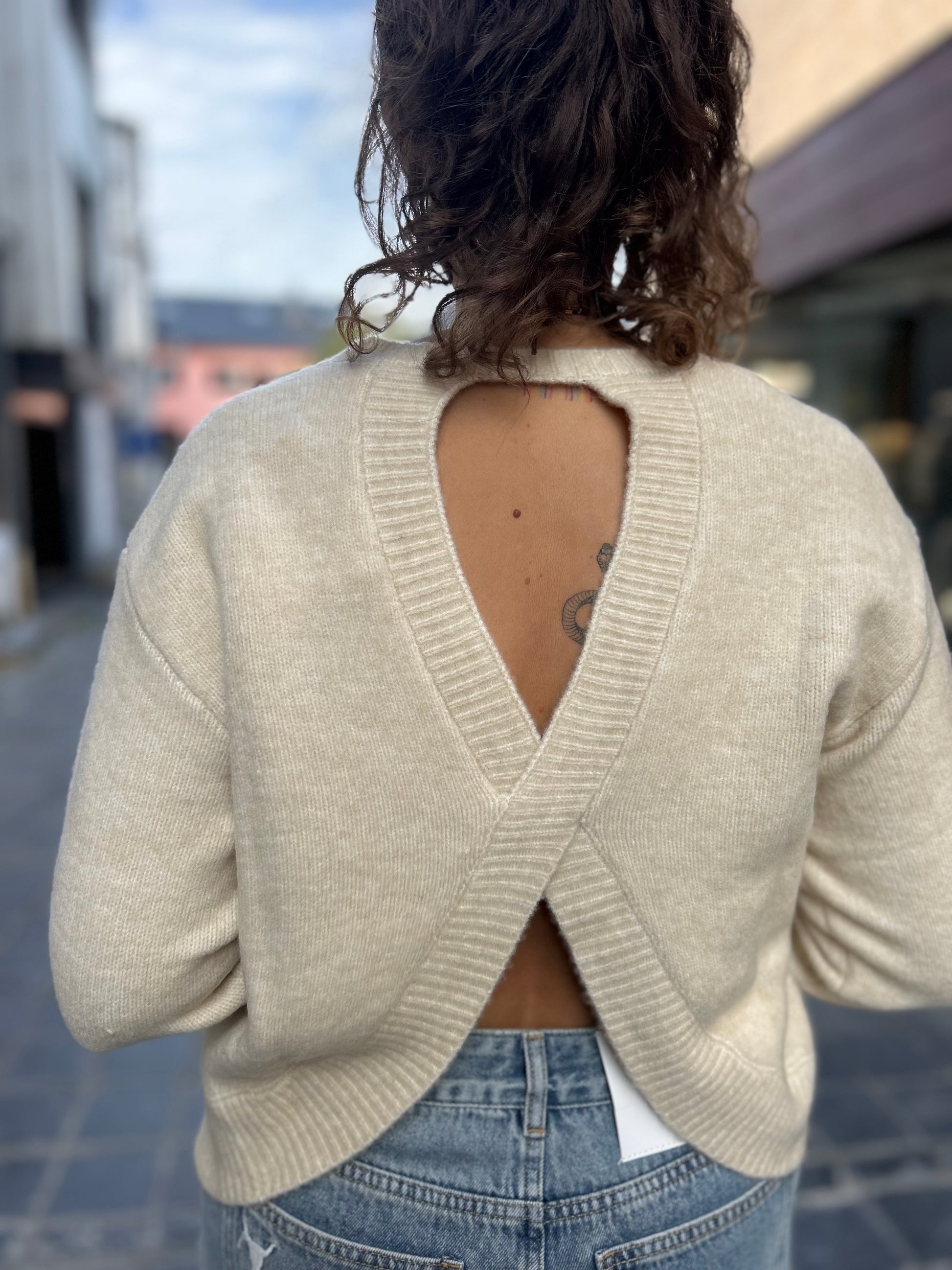 Une maille douce et raffinée qui révèle un détail audacieux dans le dos.