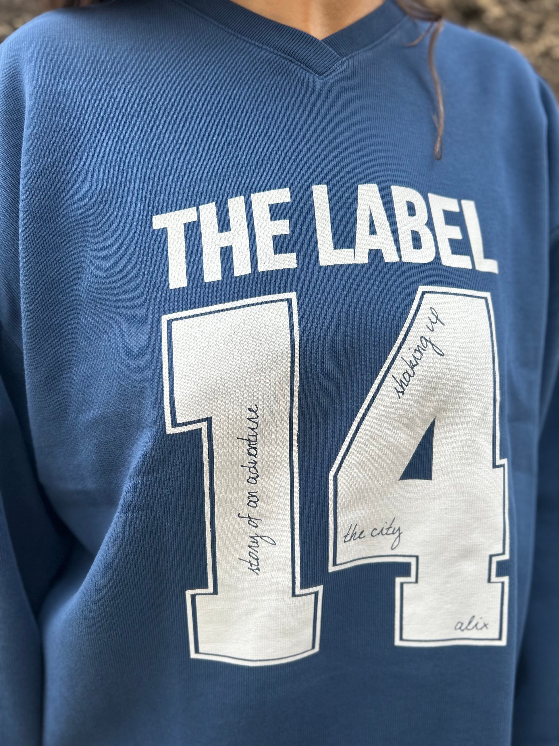 Sweater Sports bleu : un incontournable urbain signé THE LABEL 14. Confectionné en coton épais de qualité supérieure, ce sweater séduira par sa coupe oversize généreuse et son confort sans compromis. Son col en V structuré apporte une modernité affirmée, tandis que l'imprimé graphique « THE LABEL 14 » sur le devant marque l'identité de la pièce. Le discret motif taureau au dos signe le modèle avec élégance. Manches longues, matière robuste : une pièce forte pour un vestiaire contemporain et authentique.