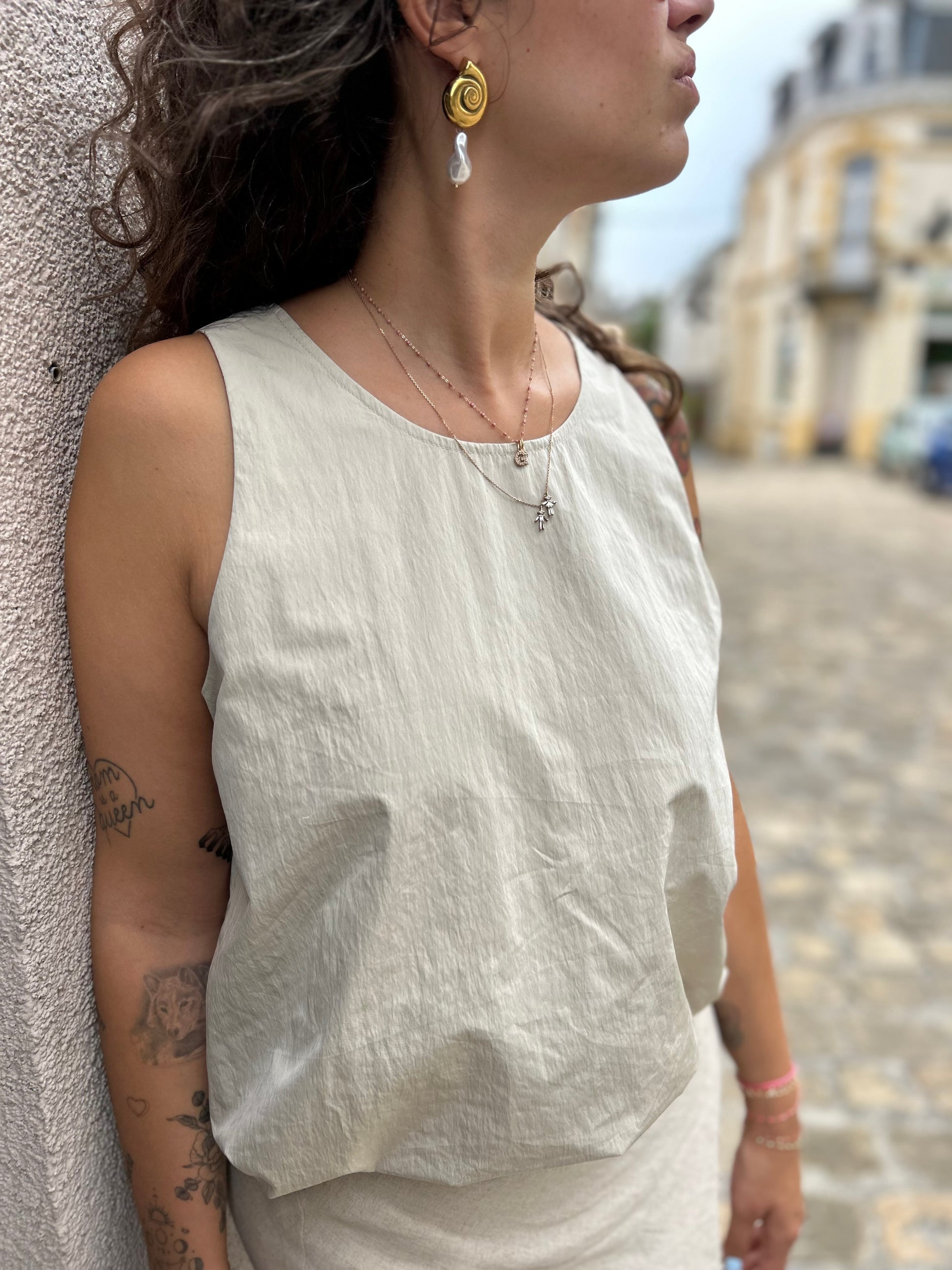 Le top Lea incarne la simplicité scandinave avec sa coupe fluide et sa teinte sable clair. Une pièce polyvalente qui s'adapte à toutes les occasions, du bureaux aux escapades estivales.