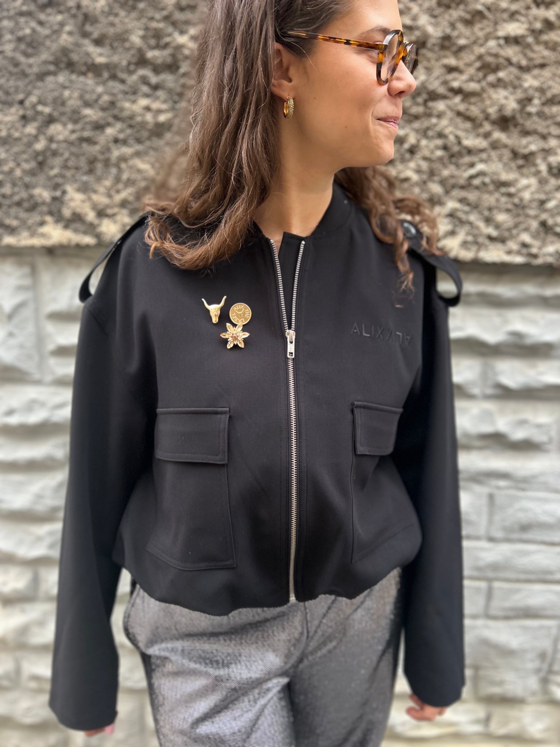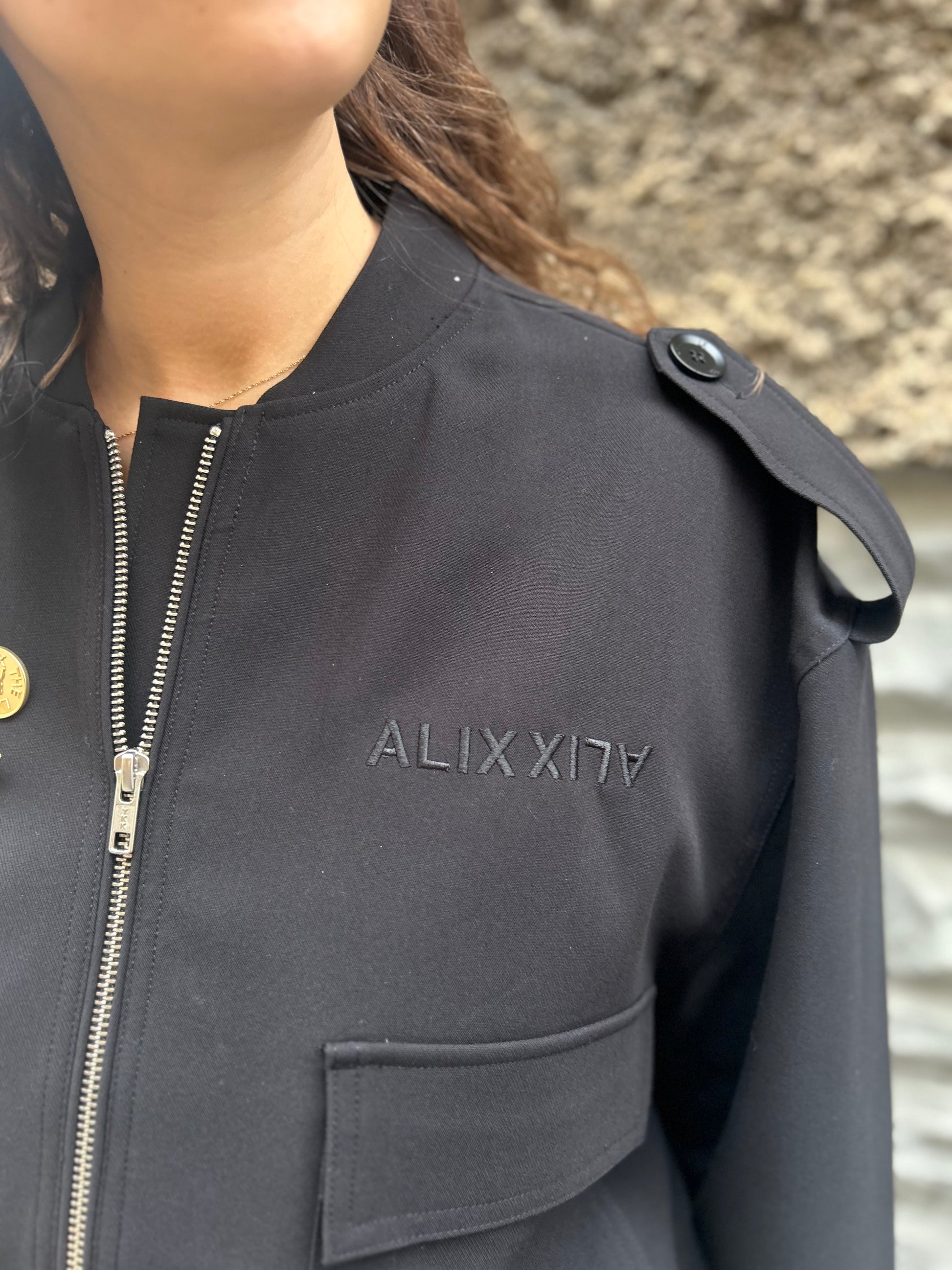La Veste Balloon incarne l'élégance minimaliste avec sa silhouette généreuse et épurée. Confectionnée en crêpe noir au tombé raffiné, elle offre une coupe loose au volume arrondi qui modernise sans compromis sur le confort quotidien. Ses détails signature (broderies miroir « ALIX » à la poitrine et « 14 » au dos) affirment une identité distinctive. Fermeture zippée, manches longues et poches frontales complètent cette pièce incontournable au design affirmé et intemporel.